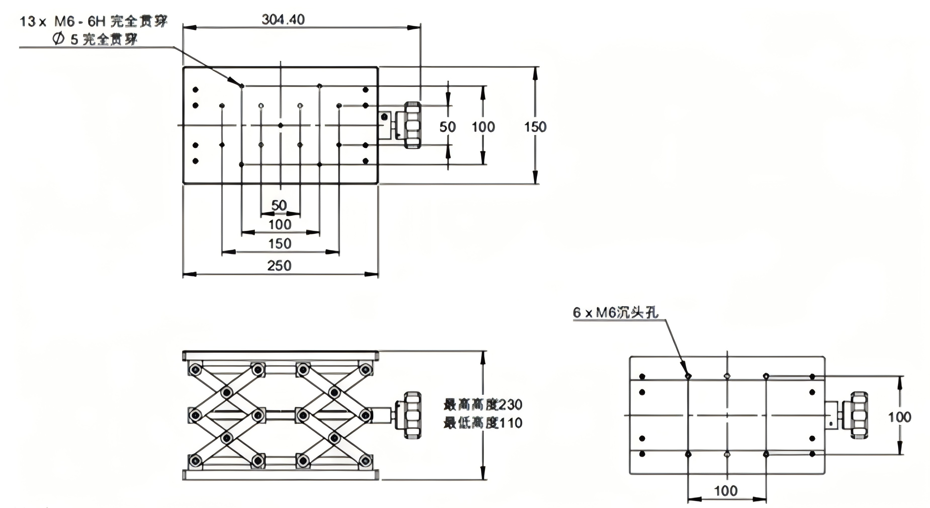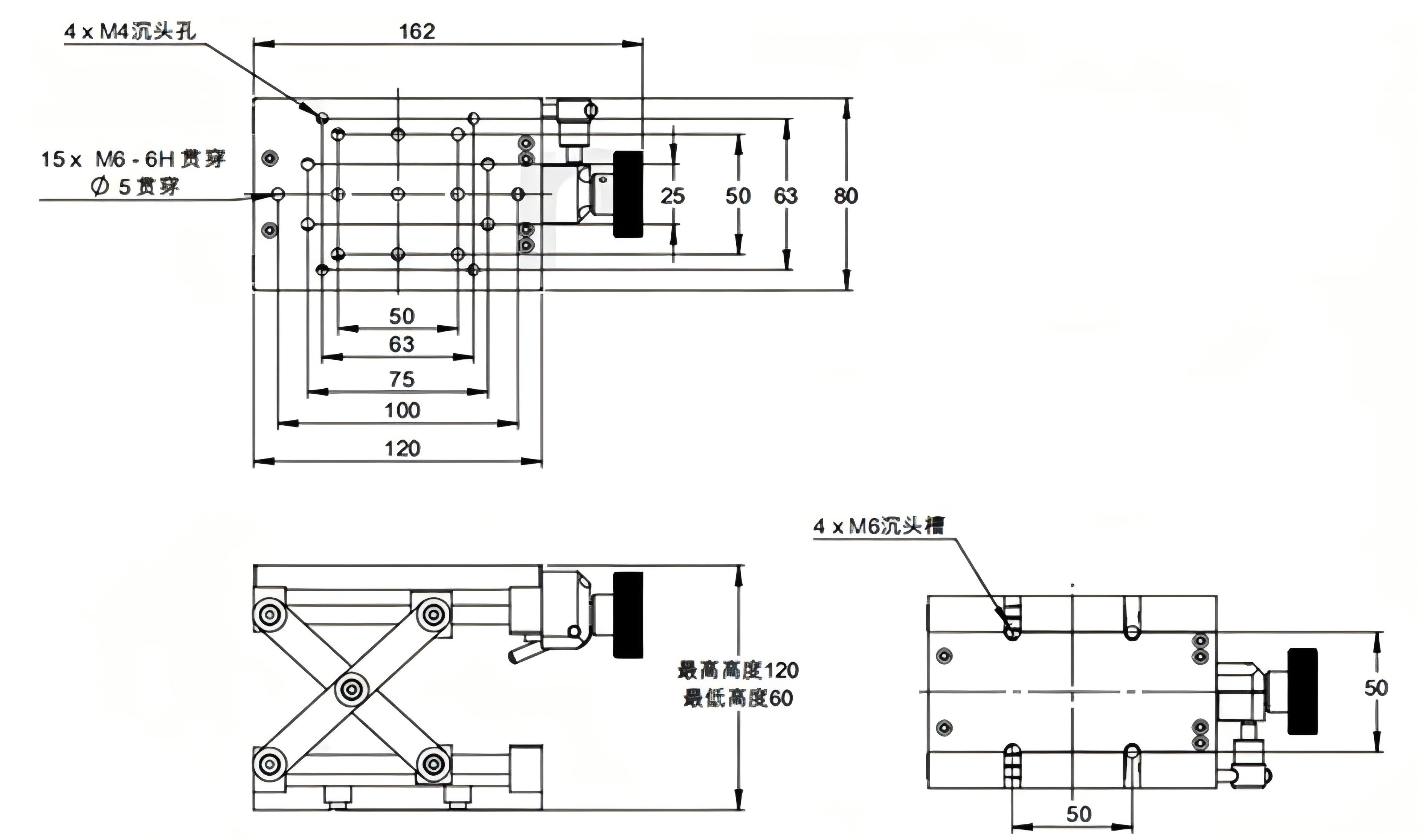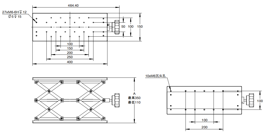 型号 材质 台面大小(mm) 行程(mm) 负载(kg) 主体重量(kg)