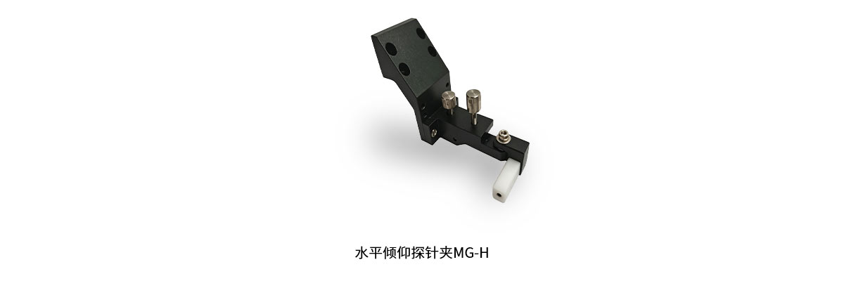 1、MG-H 系列水平倾仰探针夹结构稳定,轻巧灵便,可通用于我司大部分探针台配置。