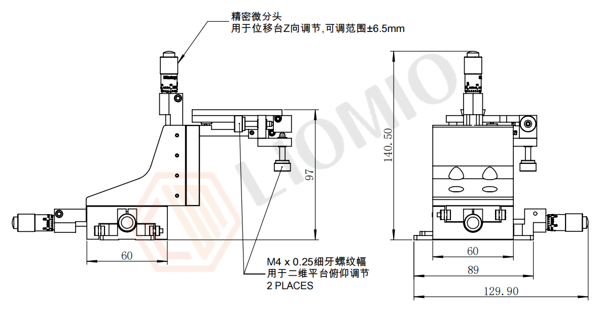 微分头(线性部分) + M4 螺纹副(旋转部分) |