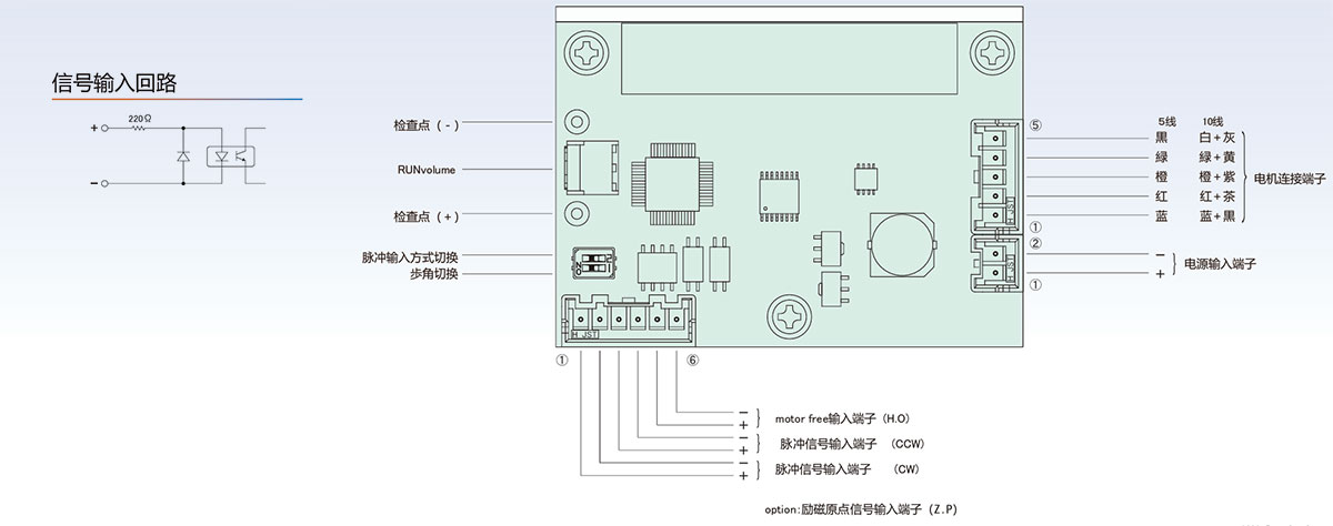 脉冲输入方式切换、自动降低电流、全 / 半步切换 |