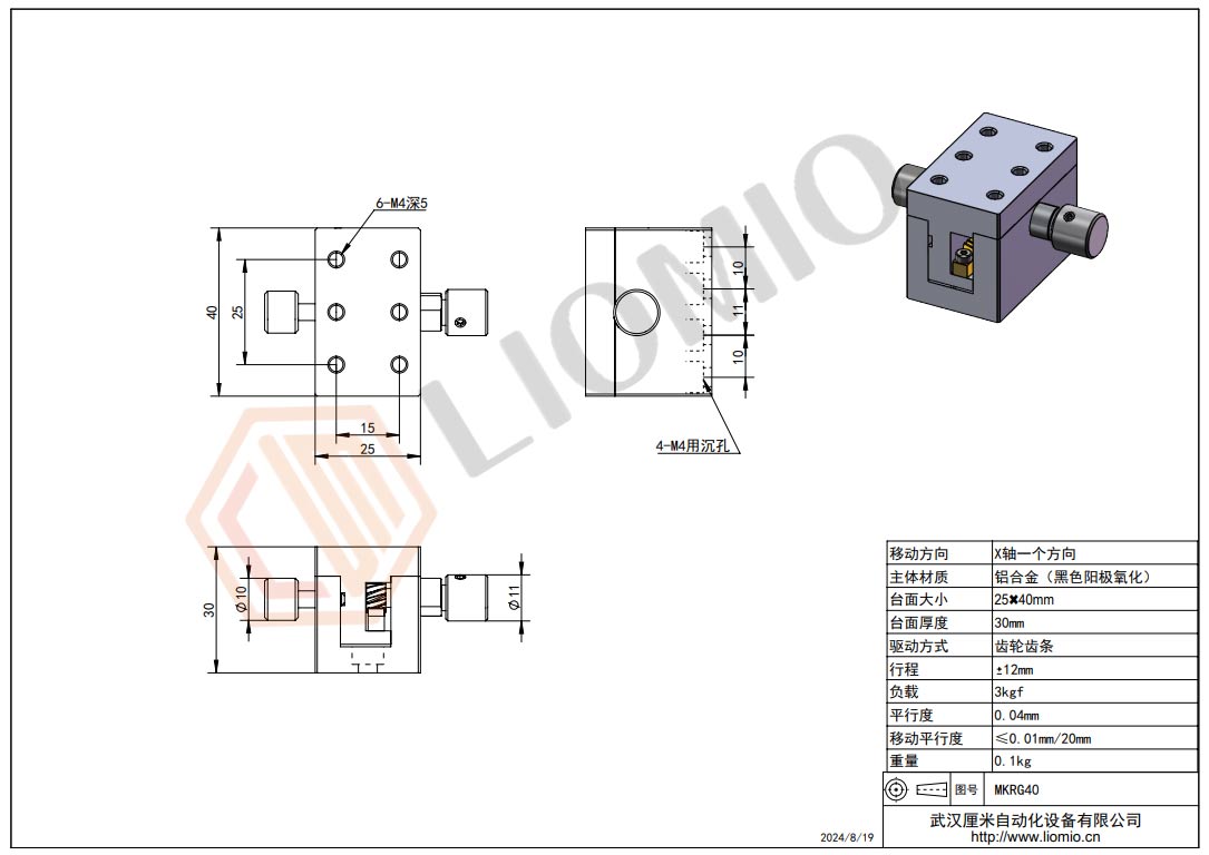 X轴齿轮齿条驱动型手动组件MKRG